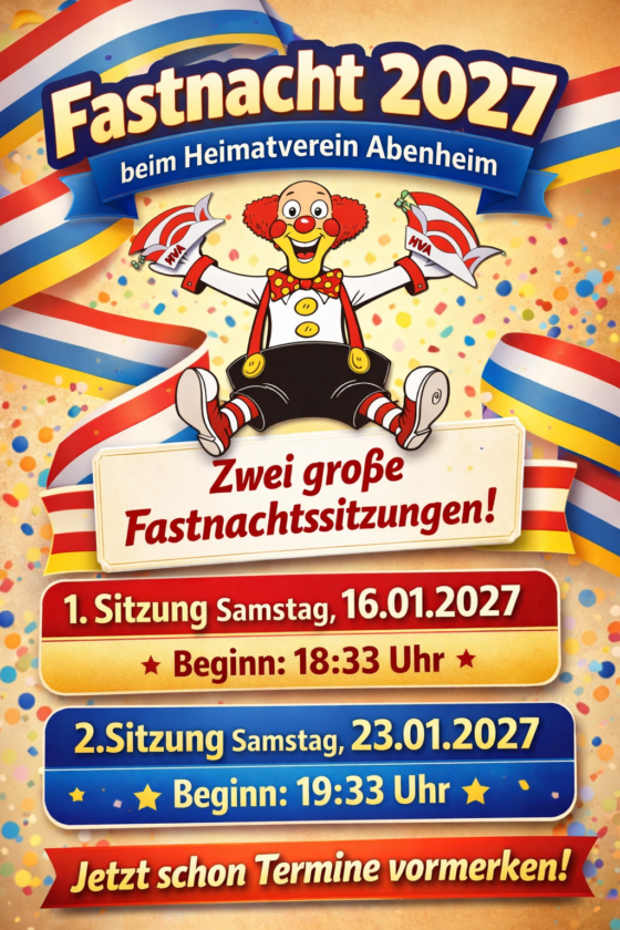 der Heimatverein hat sich seit Jahrzehnten im Rahmen der Brauchtumspflege auch der traditionsreichen Fastnacht in Abenheim verschrieben. Unter den einzelnen Rubriken lernen Sie die Vielzahl der Aktivitäten unserer Gruppen während der Fastnachtszeit kennen. Infomieren Sie sich und besuchen Sie zur Fastnachtszeit unsere Fastnachtssitzung.